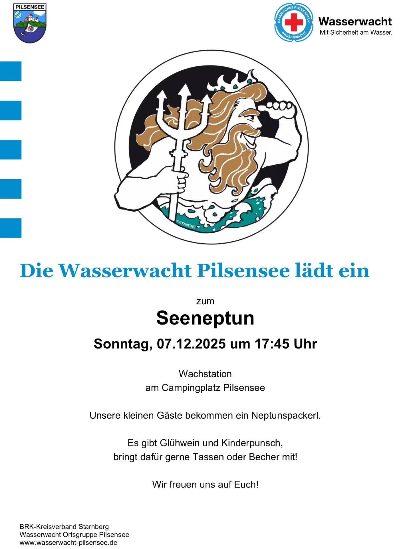 Eingeladen sind Groß und Klein. Für alle Kinder bringt der Seeneptun wieder sein legendäres Päckchen mit. Für Glühwein und Kinderpunsch ist auch gesorgt.